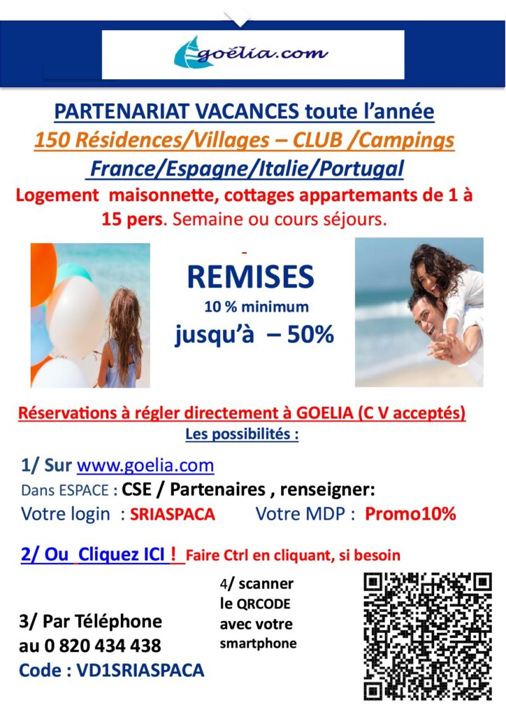 GOELIA offre 10 % de réduction (en plus des offres promotionnelles) aux ayants-droit de la SRIAS PACA.